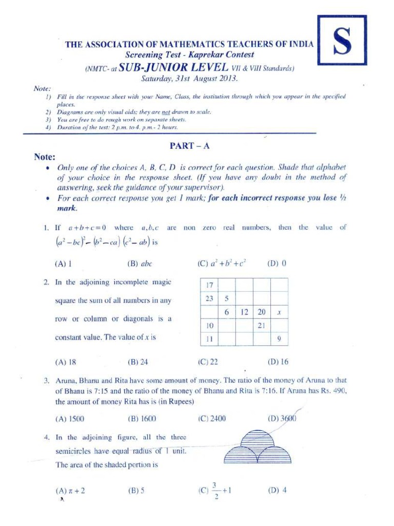 Amti Exam - Imo olympiad foundation amti gems sub junior level 2 ( middle.