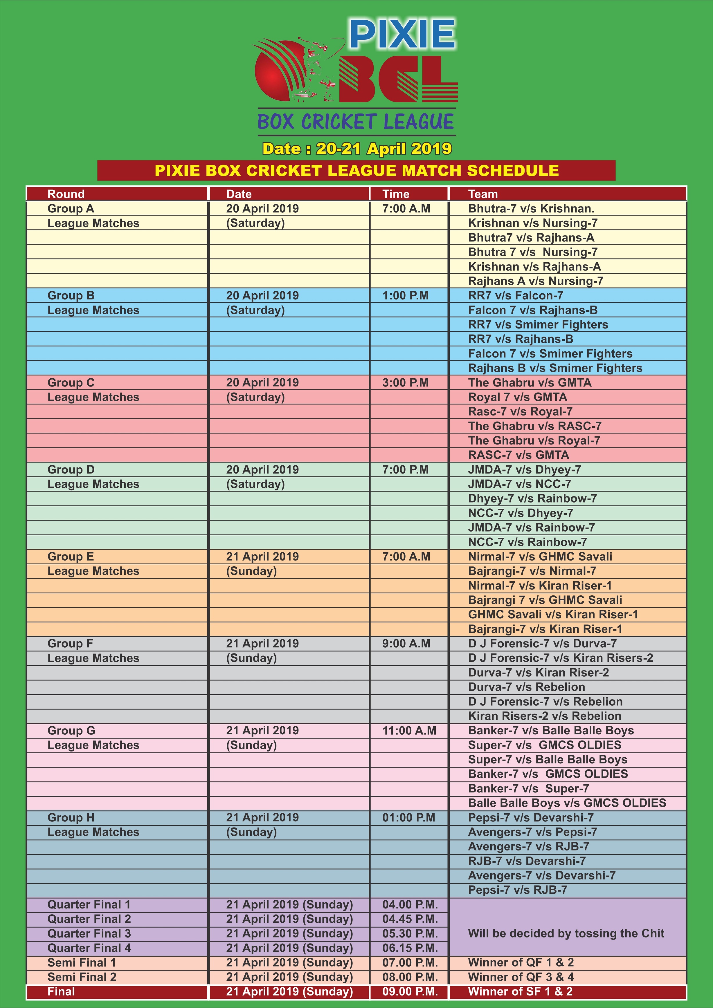 Cricket Match Schedule / Kings xi cricket club will play their 2nd match of the tournament when they will be up against kent lanka.