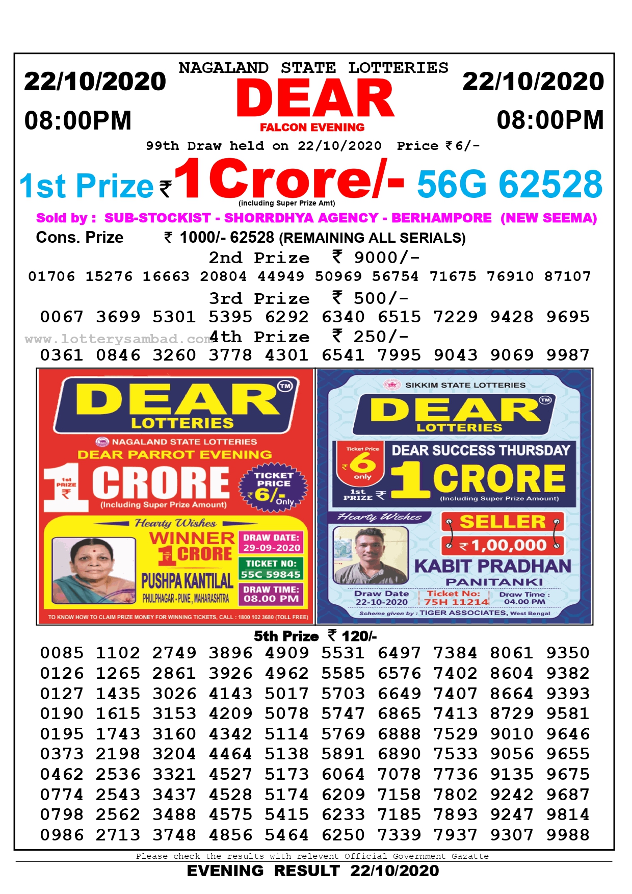 Dear Lottery Result Today 8Pm 2020 - Official today lottery result link:
