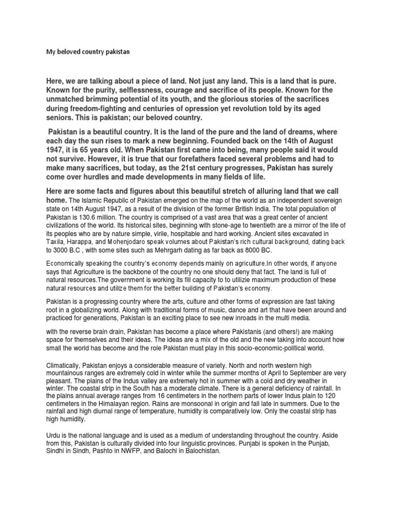 Essay On Our Country Pakistan - Pakistan is a democratic country which is being run on the principles of islam.