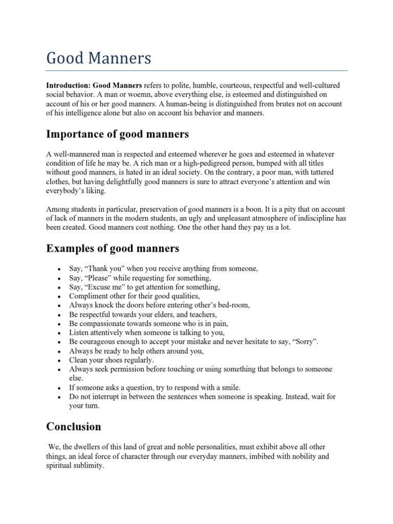 Basics And Importance Of Good Manners And Etiquettes Jobcluster Com Blog Good manner can be characterized as carrying on well with affability and courteousness to indicate right open conduct to the general population living in the public eye.