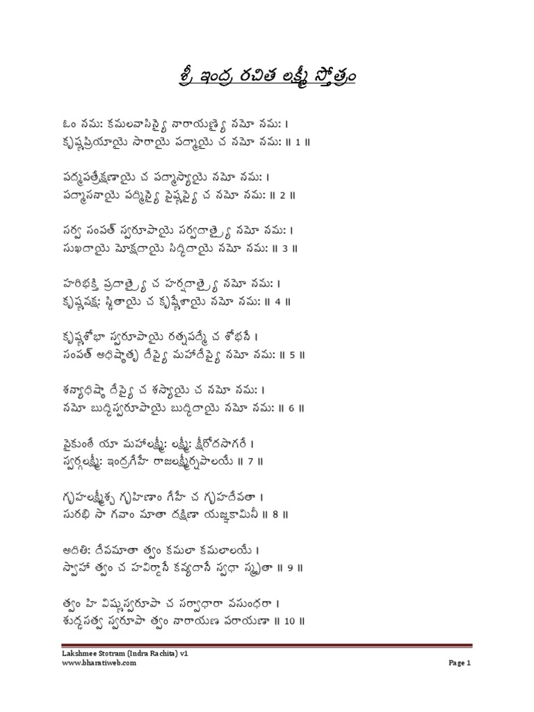 Mahalakshmi Stotram Telugu Pdf Cleverpsychic Namastestu mahamaye sripithe surapujite i worshipfully salute devi mahalakshmi, who mahalakshmi ashtakam (or lakshmi ashtakam) is a is a devotional hymn, a declaration of faith and devotion to godess mahalakshmi, the consort of vishnu.