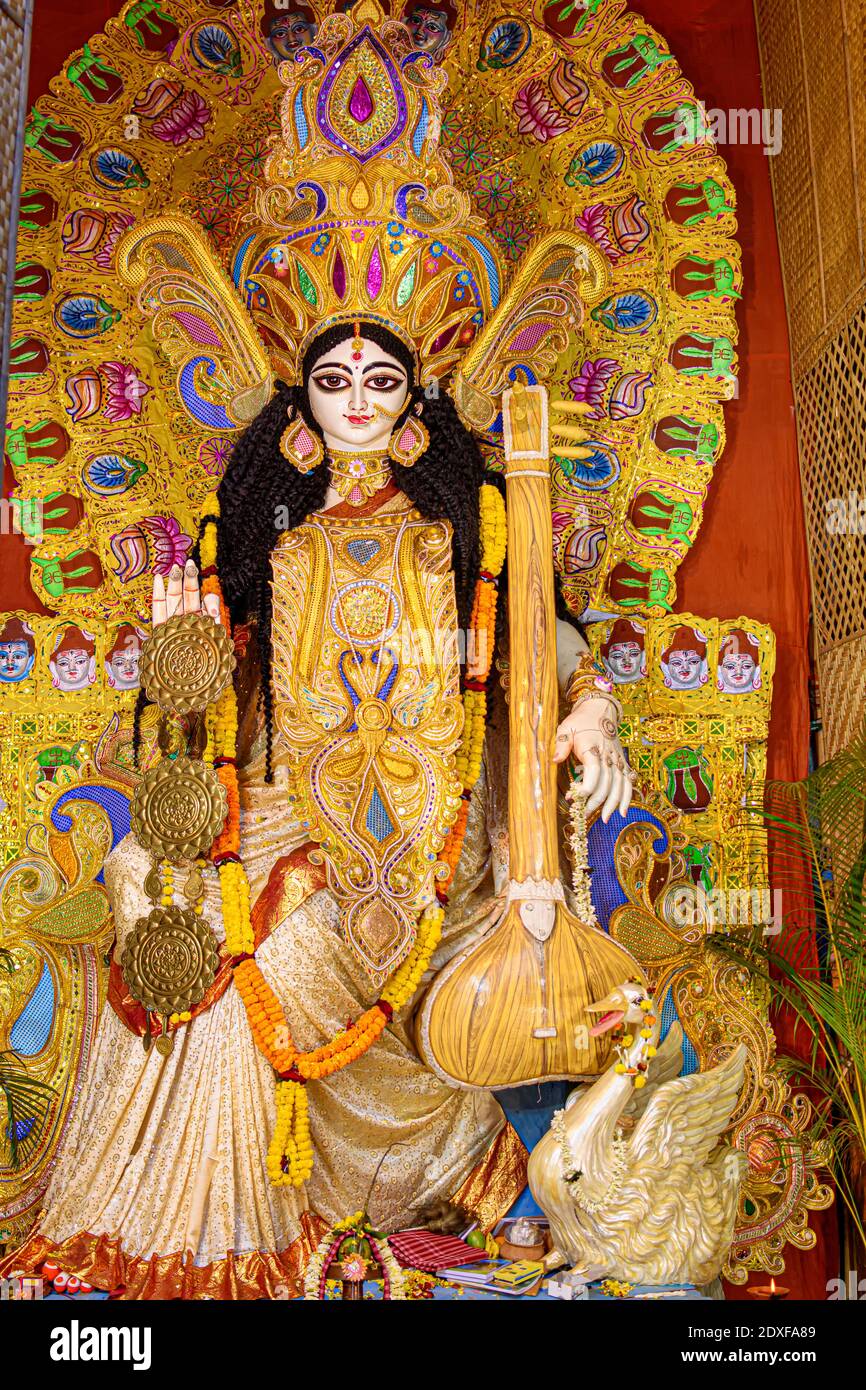 Saraswati Puja Decoration Pandal - People especially students worship hindu goddess of knowledge saraswati.